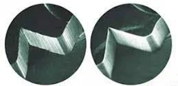 普通砂轮或金刚石砂轮磨出来的刀具,看着刃口挺锋利,其实在显微镜下全是“小伤口”—— 微小的崩刃、锯齿状的缺口,就像刚被掰断的玻璃边缘,看似尖锐却脆弱不堪。