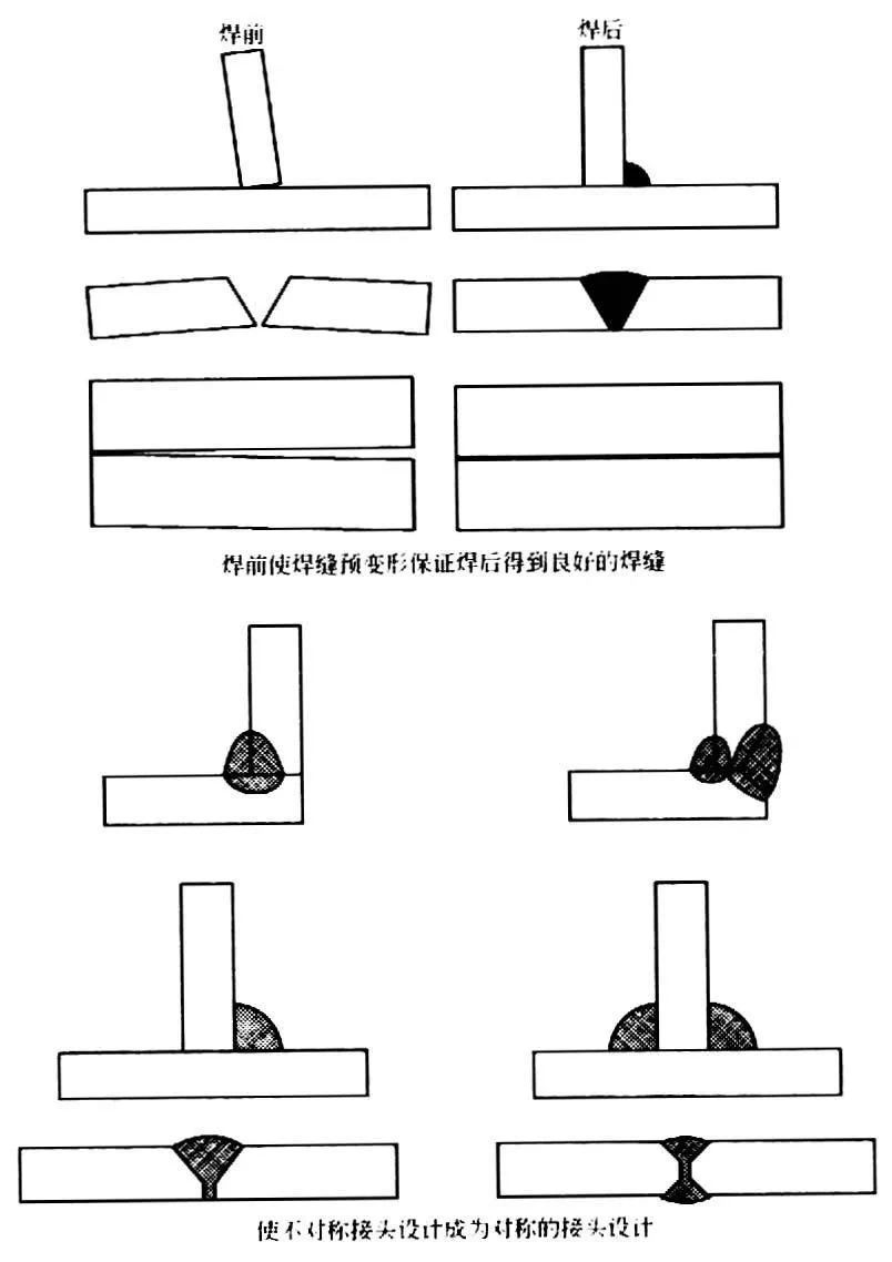 ②对于复杂结构应调整结构的焊接位置及顺序,以平衡产生的收缩力,通常应采用对角焊缝结构。
