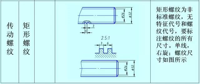 尺寸代号:公称直径×螺距(多线螺纹的导程和螺距均要注出,单线粗牙普通螺纹螺距不标注)。