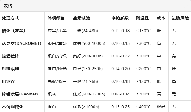达克罗处理螺栓:有银灰、银白和黑色等多种颜色,防腐性能远超传统发黑,可达200小时以上盐雾测试;