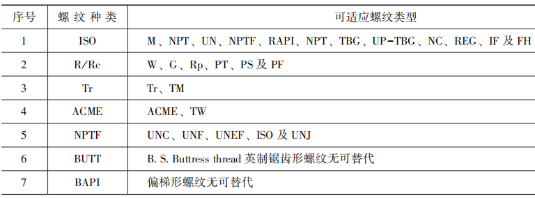 部分螺纹适应范围见下表。