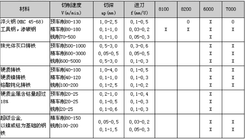 ③ 优良的化学稳定性:与铁系材料到1200—1300℃时也不起化学作用,不会像金刚石那样急剧磨损,这时它仍能保持硬质合金的硬度;PCBN刀具适合于切削淬火钢零件和冷硬铸铁,可广泛应用于铸铁的高速切削。