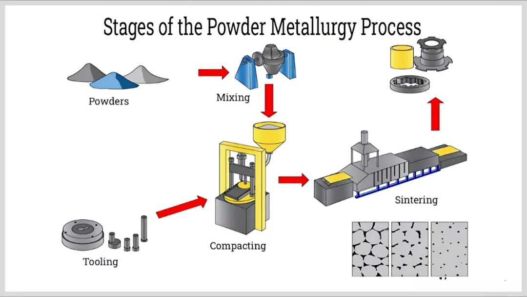 粉末冶金的核心流程始终围绕粉末制备、混合、压制、烧结四个基础阶段,数百年来这一核心框架未变,但工艺细节随工程技术发展不断优化。目前,其衍生出多种定制化工艺,包括传统工艺、注塑成型、等静压以及最新的金属增材制造技术。