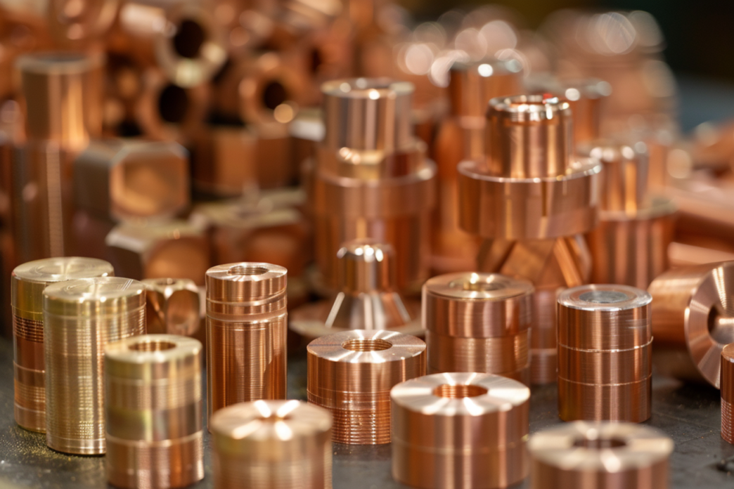 铜及其合金以铜为基础,添加其他金属元素后可改善综合性能,不同类型特性差异明显:纯铜延展性极高、硬度较低;黄铜(铜锌合金)中锌的熔点约419°C,加工时易软化并附着在刀具上;青铜(铜锡合金)耐磨性强,但高切削温度下易发生粘刀;铝青铜硬度高,切削过程中会产生大量热量,进而导致刀具粘附。