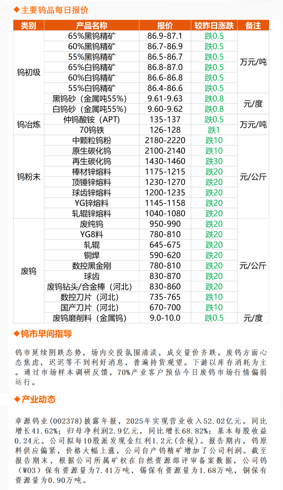 每日钨品行情|实时价格动态更新