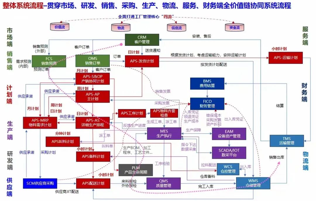 2、整体系统流程-贯穿市场,研发,销售,采购,生产,物流,服务,财务端全价值链协同系统流程