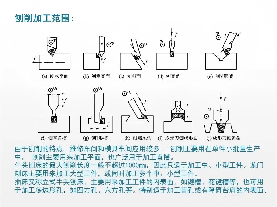 刨削的核心运动形式是刀具或工件做直线往复运动,通过刀具与工件之间的相对运动,实现对平面、直线沟槽等简单型面的加工。