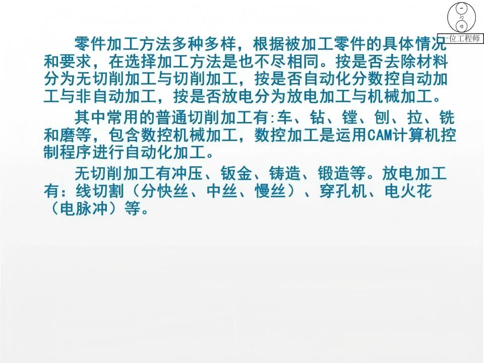 机械加工是通过机床对工件进行切削成形,以获得预定形状、尺寸和表面质量的制造过程。常见的机械加工方法有车、钻、镗、刨、拉、铣和磨等。