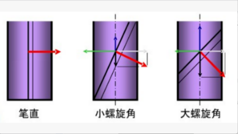 1. 螺旋角不是越大越好:过大易崩刃、刚性下降、长悬伸易振刀,且轴向力增大,刀具容易脱落,所以试用大螺旋角的刀具时,建议使用强力刚性好的刀柄。